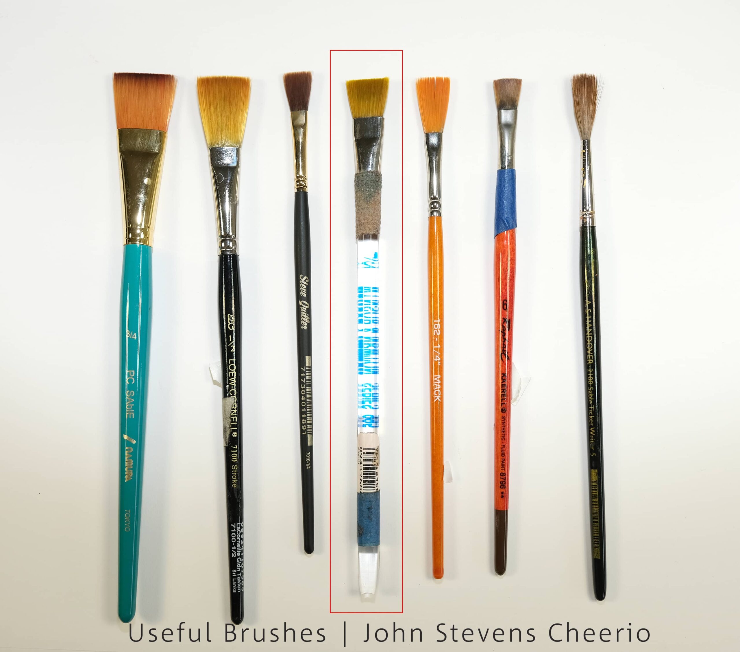 If we get to work with the brush in this workshop, (it is a full workshop of info, so I am not sure), I recommend this Raphael (at left) or a Winsor&Newton 995, 1/2 inch.