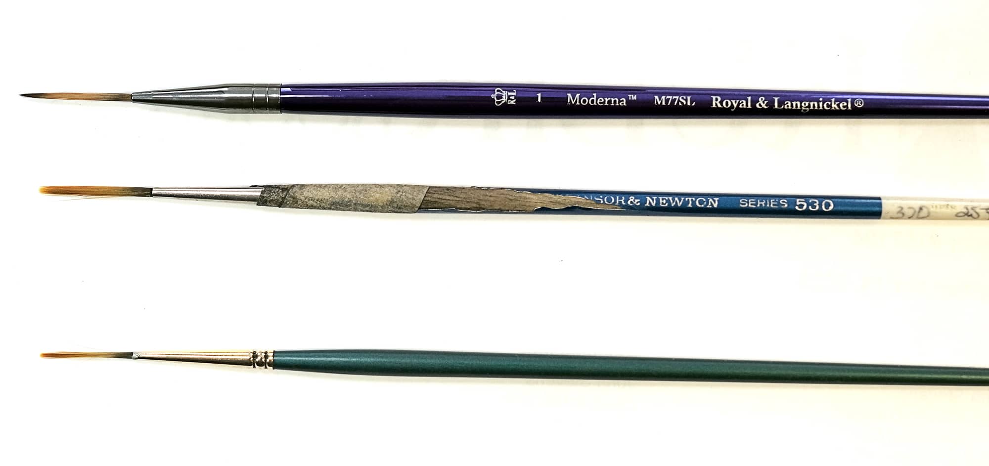 Below: I show a graphic comparing short-hair flat brushes and longer hair, round-ferrule brushes.