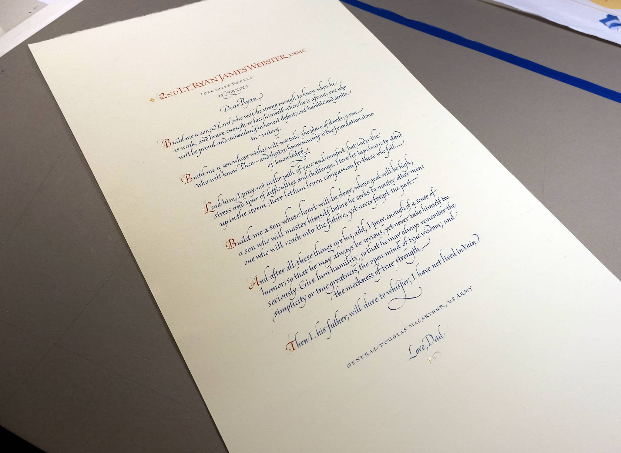 To Honor and acknowledge.Hand-crafted, in calligraphy. No fonts, but rather pure craftsmanship.
